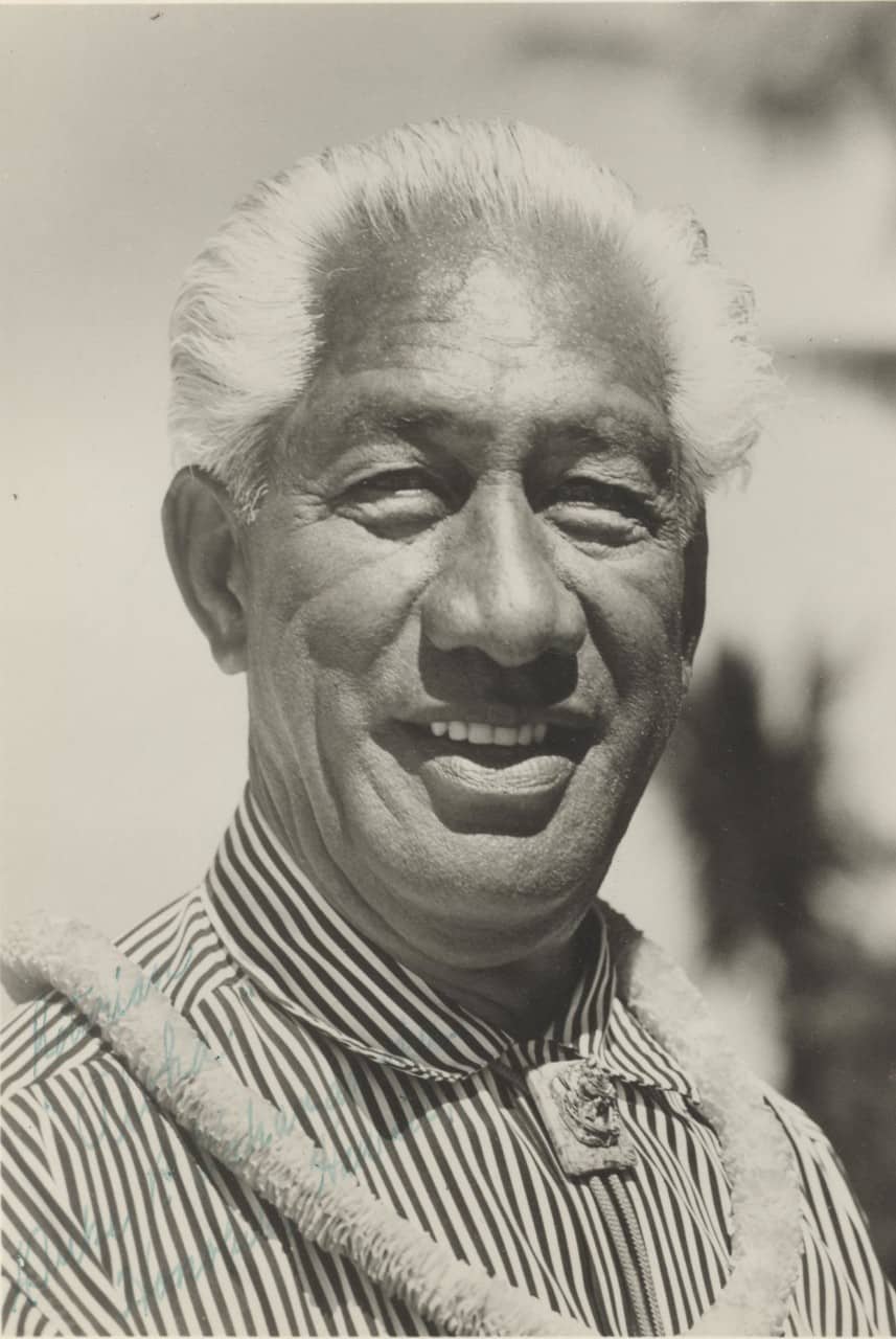 Nicknamed “The Big Kahuna,” Duke Kahanamoku was a towering figure in the worlds of sports and entertainment. Born in Honolulu, Hawai’i, in 1890, Kahanamoku was a five-time Olympic medalist in swimming, having competed in the 1912 Olympics in Stockholm, the 1920 Olympics in Antwerp, and the 1924 Olympics in Paris. Kahanamoku also was an alternate for the U.S. water polo team at the 1932 Olympics in Los Angeles. Following his trail-blazing athletic career, Kahanamoku worked as an actor, sheriff, and surfer, helping to popularize the Hawaiian sport of surfing to a new generation of surfers all over the world.